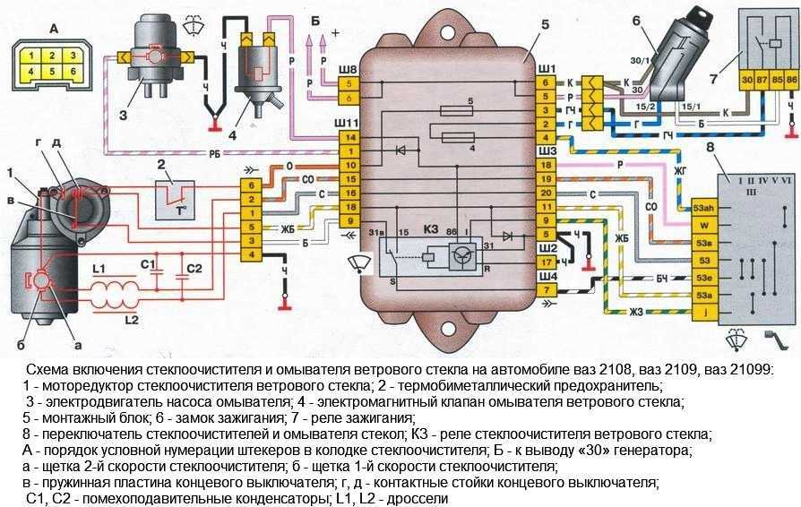 | Нет срабатывания дворников, после включения стеклоомывателя | Вероятнее всего, испортился подрулевой переключатель режимов (заменить на заведомо исправный). | Возможно, что нарушилась работа и исправность монтажного блока (измерить напряжение на клеммах 9 и 18). | |