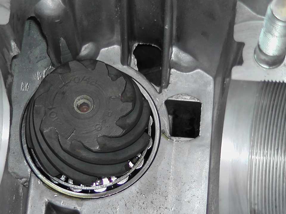 Вынимаем ведущую шестерню с внутренним кольцом, сепаратором, распорной втулкой и роликами переднего подшипника. Аналогично демонтируем наружное кольцо заднего подшипника.