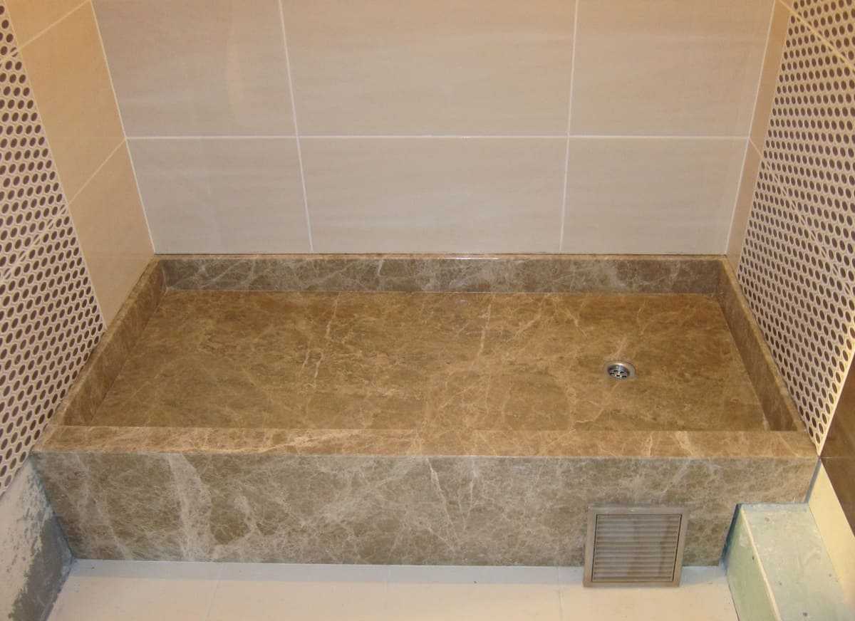 Искусственный мрамор для душевых чаш — это бетон с полимерными добавками в виде смол, минеральных наполнителей, полиэфирного гелькоута. Основные неисправности те же, что и у акрила (трещины, сколы, деформация в результате неправильного монтажа).