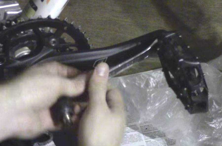 Важно, чтобы он ровно сел на вал, иначе ось можно повредить при откручивании шатуна. Накидной ключ установить на съемник и с усилием вкрутить его до упора, пока шатун не выдавится с кареточного вала