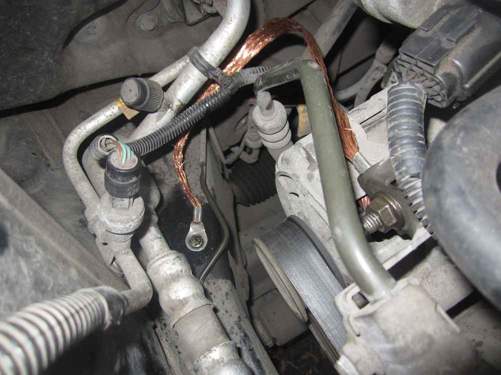Далее мнения разделились. Одна половина мозга была за более простое решение — прикрутить этот дополнительный провод за болт крепления кронштейна трубки кондиционера