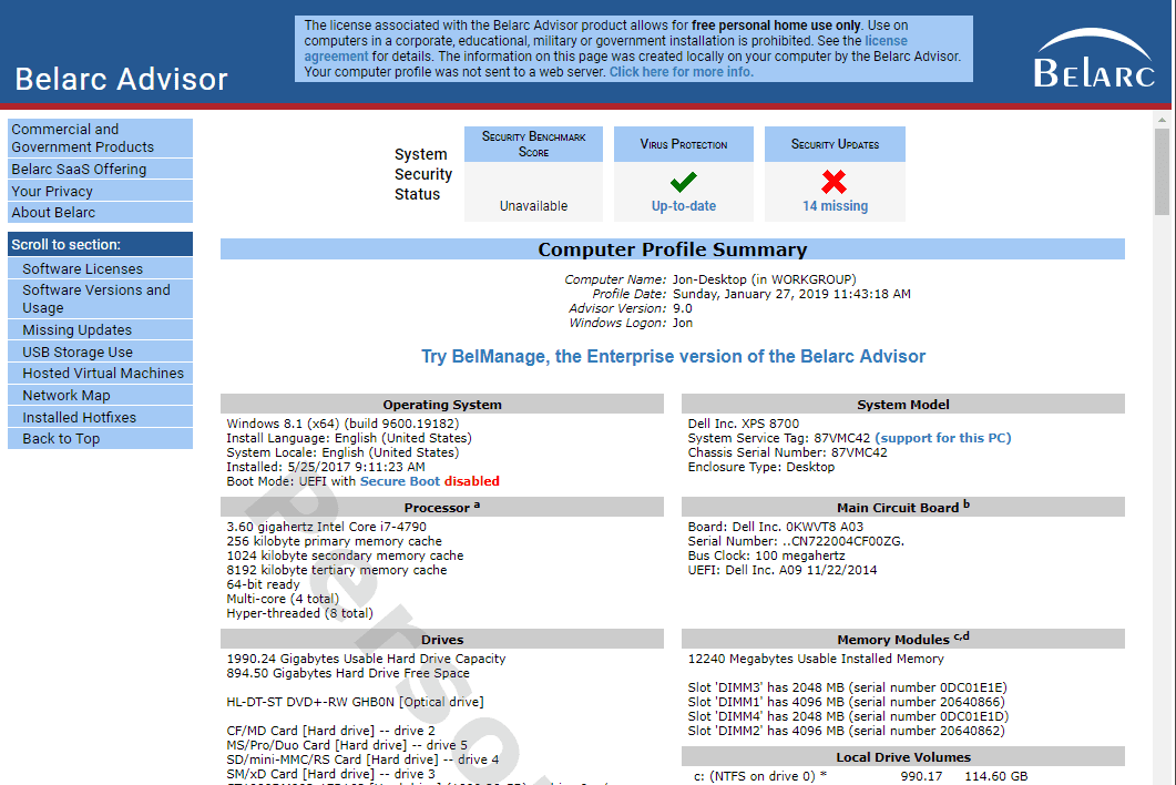 Belarc Advisor