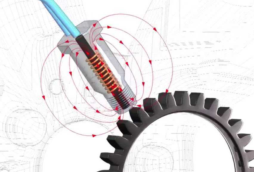 Датчик работает на принципе электромагнитной индукции. Пока катушка находится в покое, то на выходах датчика отсутствует какой-либо сигнал. Когда автомобиль начнет свое движение, то около сердечника датчика будет двигаться зубчатый ротор кольца. Это приведет к изменению магнитного поля, проходящего через катушку.
