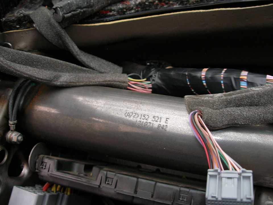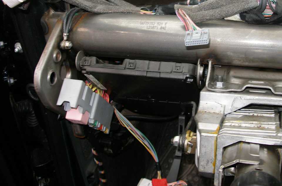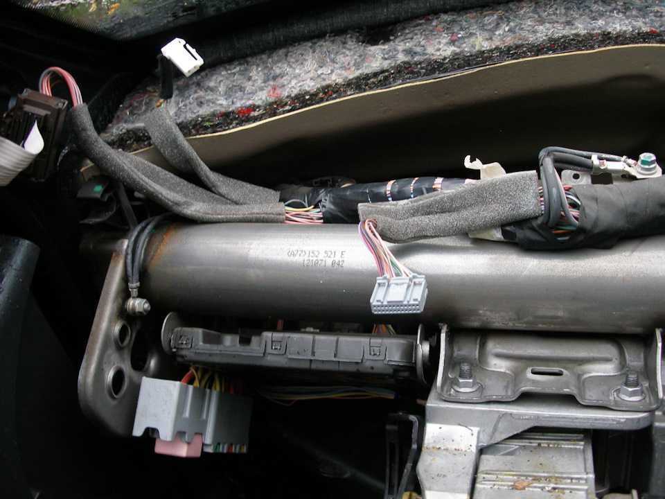 7. отвинтить винт по центру самой черной коробочки8. вывести из пазов держатели (чёрные кружки с резьбой на самой чёрной коробочке). У меня получилось грубо, ибо справа давить и манипулировать мешает «труба»9. отсоединить штекерыих 5Мне хватило отсоединить 42 нижних — по центру сверху нащупываем пластиковый язычок, давим его в сторону проводов (к центру фишки) и тянем саму фишку вверх (перпендикулярно)2 верхних — нащупываем дугу, которая прищёлкивает штекер, под ней нащупываем «кнопку», которая блокирует самопереход дуги из вертикального в горизонтальное положение. Давим кнопку вниз и одновременно перемещаем дугу над «кнопкой» от проводов.5-й — понял, что там непросто, может ногтей не хватить, куда там жать, или даже отвертка для отжатия какого-нибудь язычка на этом штекере. Снимать не стал.Черная коробочка приспустилась, «толстые» косы проводов к этому блоку больше не мешают.Везде дотянулся, и всё снял.