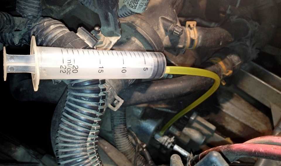 - Следует взять медицинский шприц на 20 кубиков, на носик надевается шланг соответствующего диаметра.