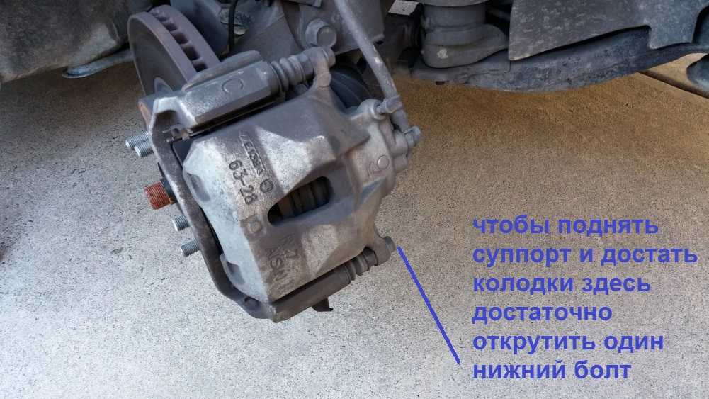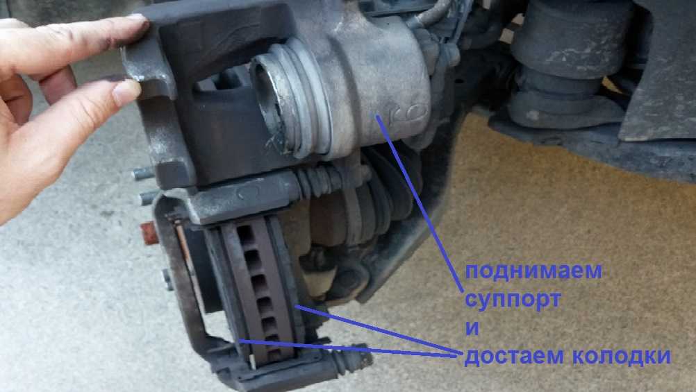 Снять суппорт вместе со скобой, а затем отсоединить шланг от трубки.