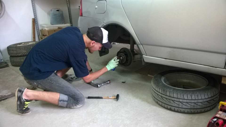 Неисправность выявил еще когда менял тормозные колодки и потом на подъемнике мне подтвердили что подшипник ступицы гудит и надо бы поменять.В сервисе замена стоит 500р (только работа). Моя жаба тут же забила панику, а когда к ней присоединилось желание сделать что-то своими руками выбор был сделан — гараж друга и самостоятельный ремонт mm/Взяв у друга магический самодельный съемник и заручившись поддержкой интернетов и книжечки по ремонту было положено начало прекрасного вечера^^