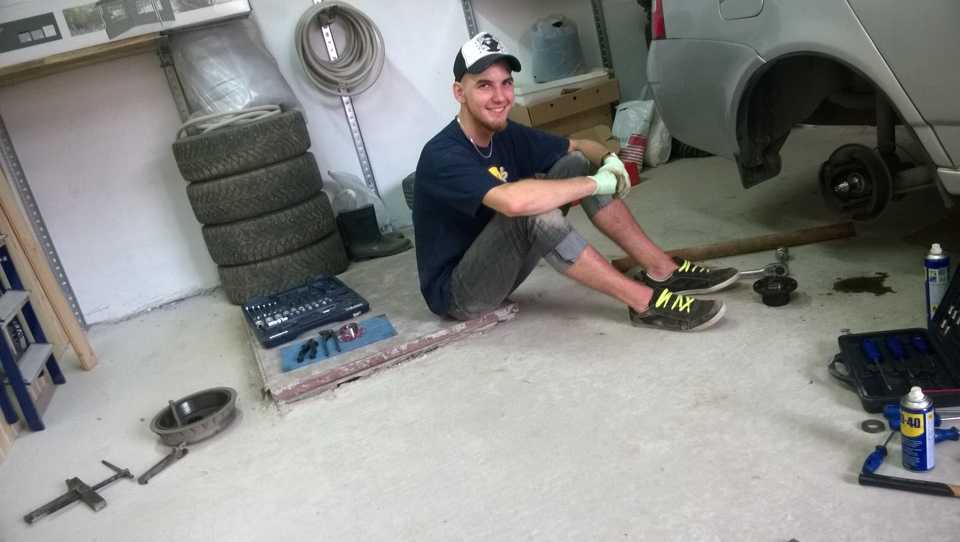 а вот и нет! ничего не готово.кручу колесо, что бы проверить результат. должно легко крутиться и долго не останавливаться, но не тут то было. крутится еле-еле((снял машину с домкрата, проехали кружок между гаражей, загоняем обратноснова стандартно, ручник, передача, домкрат, подпорки под колеса.поднимаем, кручу — не крутится вообще! тут у меня паника, че за хрень, все новое, всё смазано, что этому тольяттинскому детищу еще надо?!тут мне друг говорит — а снял ли ты ручник… -_-да, после снятия ручкика всё закрутилось)) счастью нет предела, вечер уже перешел в ночь, работа закончена=)