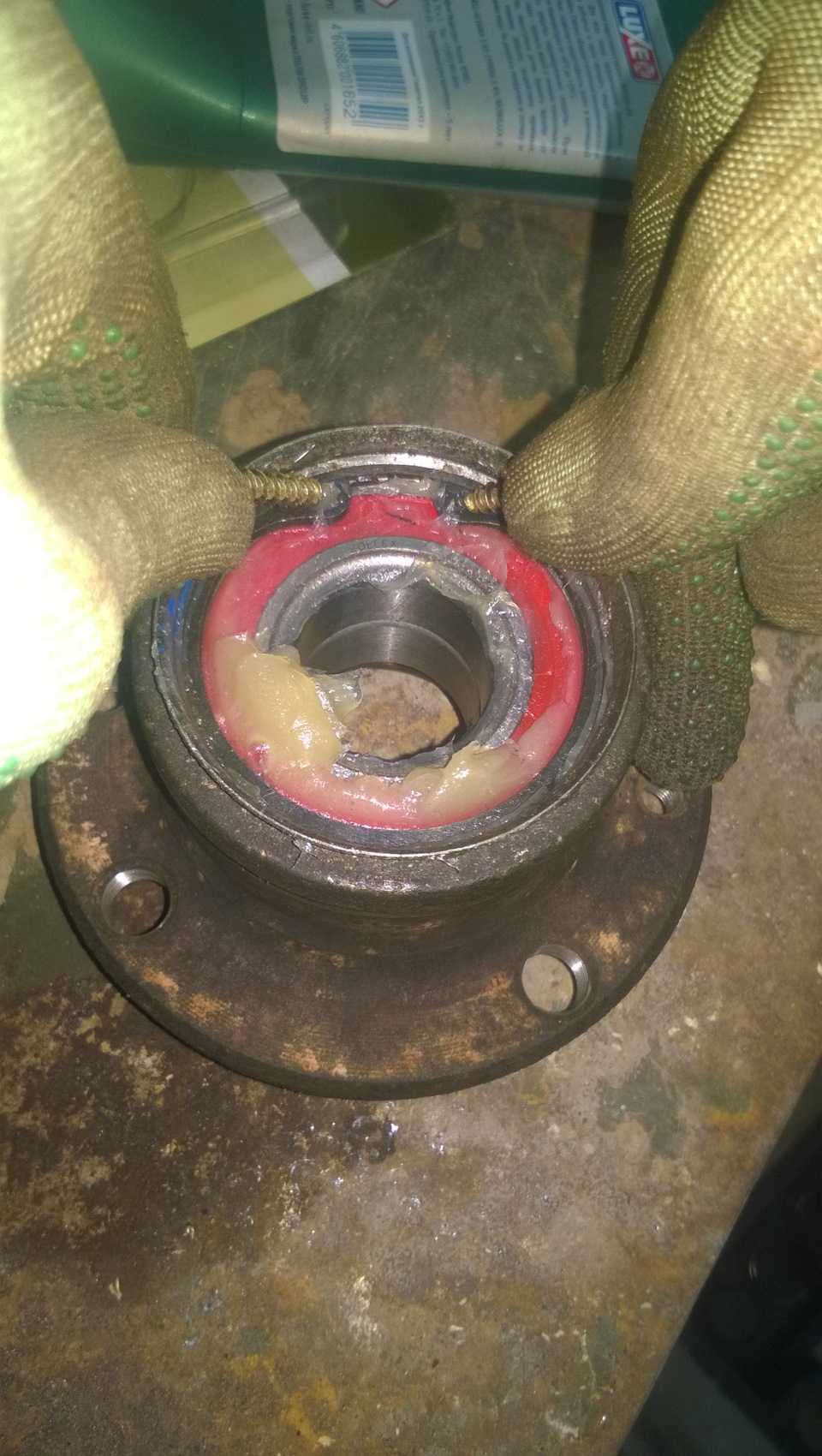 Перед запрессовкой нового подшипника очищаем гнездо ступицы и наносим на нее тонкий слой смазки.