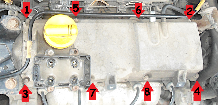 — Течь масла под клапанную крышку можно попробовать устранить подтяжкой болтов ее крепления. Сначала немного отпускаем болты крепления, а затем затягиваем согласно схеме затяжки. Если не удается, меняем прокладку.