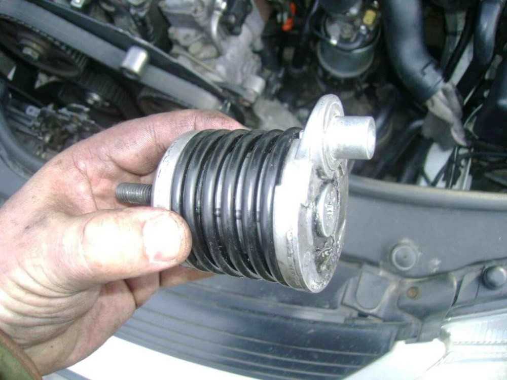 Меняем натяжной ролик на новый. Конечно, делать это нужно только в случае необходимости. Если сами вы не сможете оценить его состояние, то пригласите для этой цели специалиста.