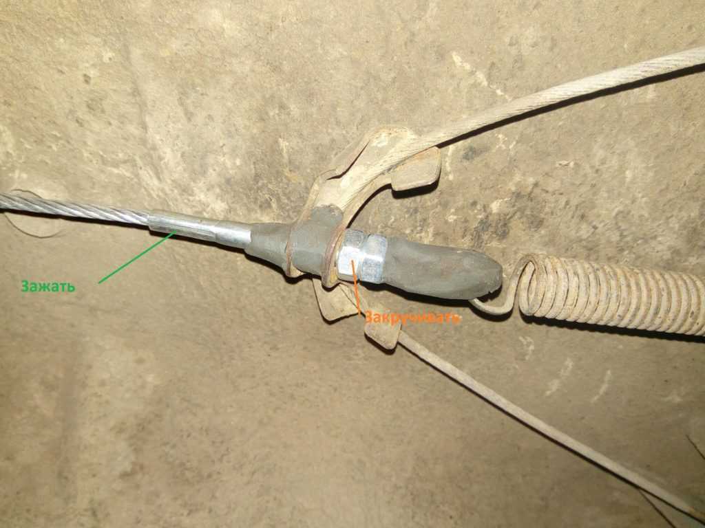 (стрелки на сопроводительной иллюстрации) троса привода стояночного