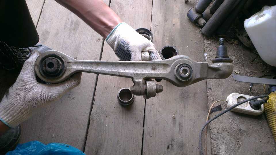 - верхний рычаг непременно необходимо зажать в тисках на верстаке и выпрессовать старенькые сайлентблоки;