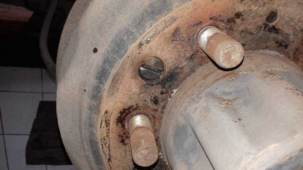 - Торцовым ключом на 17 мм или достаточно изогнутым накидным ослабьте контргайку. Затем торцовым ключом на 9 мм вращайте эксцентрик, визуально контролируя зазор между колодками и барабаном. Добейтесь «золотой середины», когда зазор минимален, но колесо вращается легко.