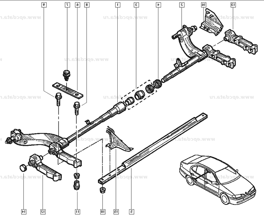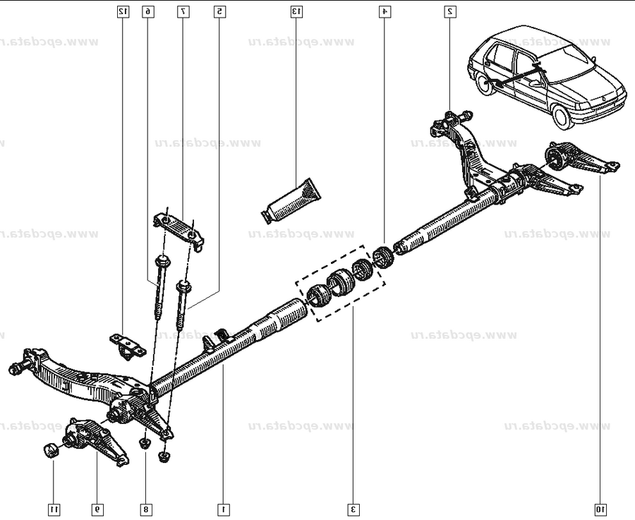 Состоят из четырёх торсионов и двух сайленблоков. На Рено ставились ещё двухторсионные балки. Задняя подвеска Рено Меган 1 — торсионная балка, 2 — торсионы, 3 — стабилизатор поперечной устойчивости, 4 — амортизатор, 5 — продольный рычаг, 6- L-образная поперечная балка, 7- двухсоставные торсионы Замена амортизаторов задней подвески Рено Меган Операции по замене амортизаторов задней подвески Рено Меган: При этом автомобиль должен стоять на колесах.