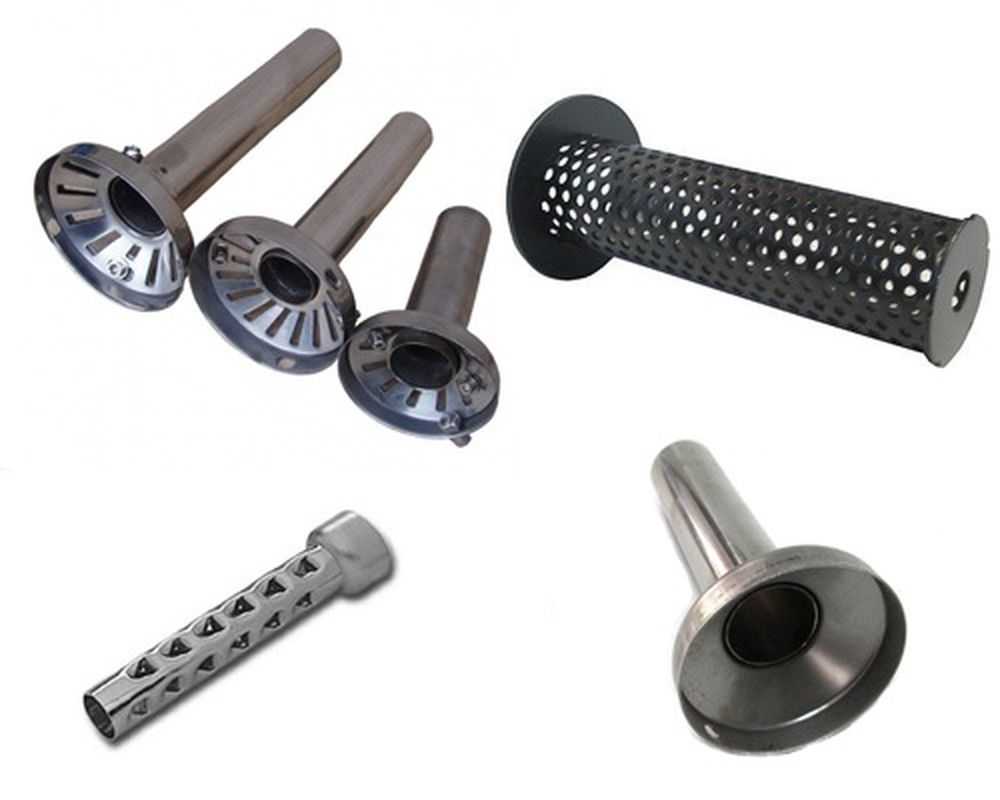 - Внутреннее — для больших диаметров. Диаметр меньшей трубы должен быть на 15–40% меньше диаметра выходного патрубка, длина — от 0,25–0,35 м до 0,50–0,75 м. В ней, как правило, выполняются разгрузочные отверстия.