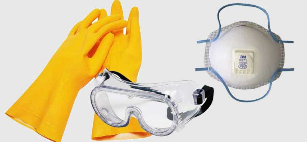 - работать только в средствах индивидуальной защиты: резиновые перчатки, защитные очки, удобная спецодежда, закрывающая все части тела;