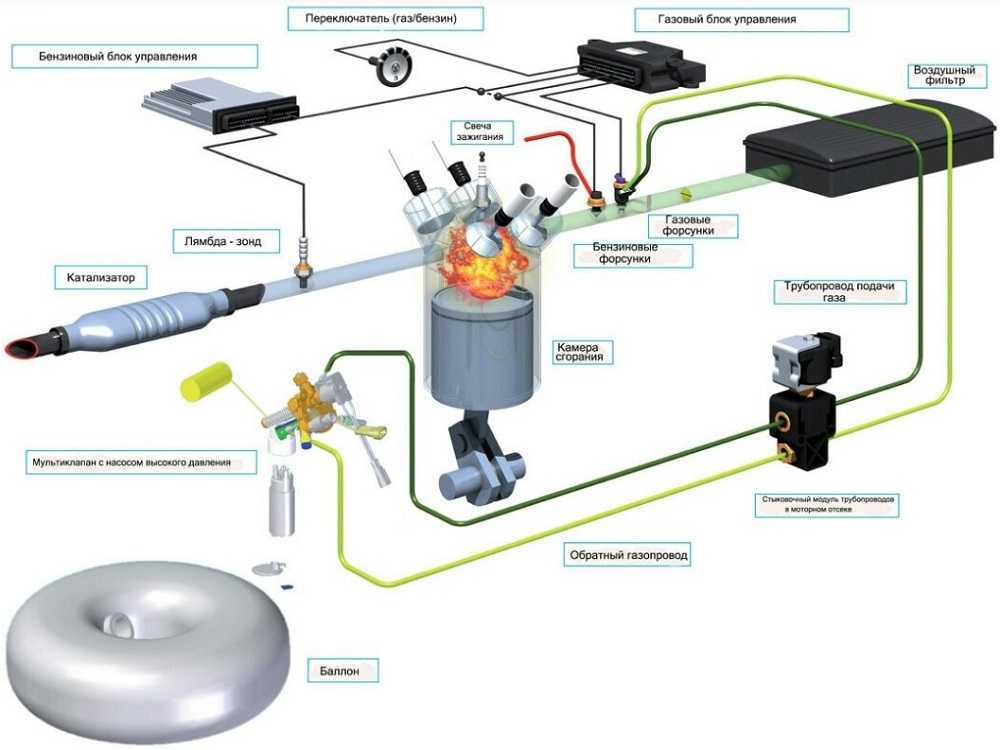 - Машина с ГБО может передвигаться как на газу, так и на бензине.