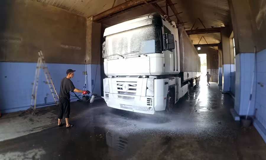 Метод бесконтактной мойки несомненно произведёт на вас приятное впечатление вдвойне, если вы водитель фуры или грузовика. Вместо обычных двух часов на мойке нужно будет провести максимум 20 минут. С задачей справится всего один мойщик и ему не потребуются ни стремянка, ни подставка и уж тем более швабра, ведь мощная струя «чудо пены» благодаря пеногенератору блестяще отмоет фуру до самого верха.