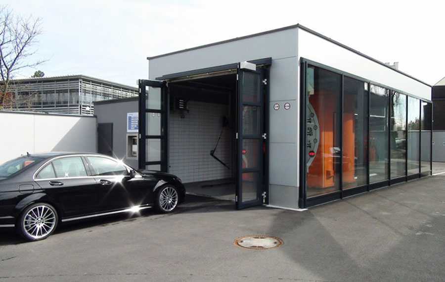 Еще один вид – это портальная мойка. Она представляет собой бокс, в котором установлен моечный аппарат. При этом автомобиль фиксируется на специальной платформе, а сам аппарат движется, осуществляя мойку и сушку.